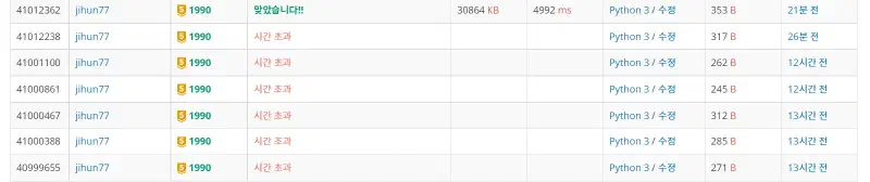 역시 시간초과가 났다.