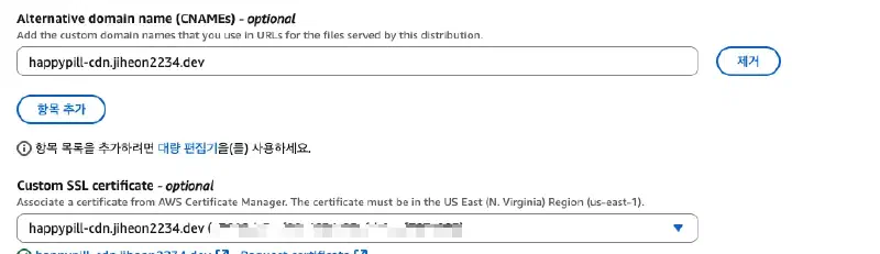 CloudFront 배포에 커스텀 도메인 연결#