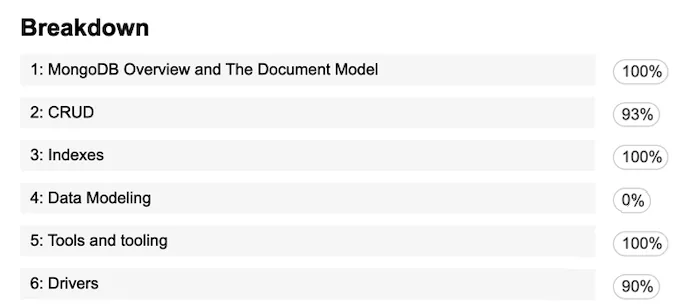 Reddit 눈팅중에, mongoDB student program를 통해 20만원 (150$) 짜리 시험을 무료로 볼 수 있게 해준다는 글을 발견했다. mongoDB에서 제공하는 자격증 강의를 전부 수강하면 무료 응시권을 받을 수 있었다. 별도로 자료를 찾아 공부할 필요 없이 직접 강의를 제공했기에 바로 시작했다.