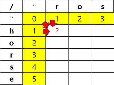 h를r로 교체 만일 word1[i]==word2[j]일 경우, 교체비용은 0