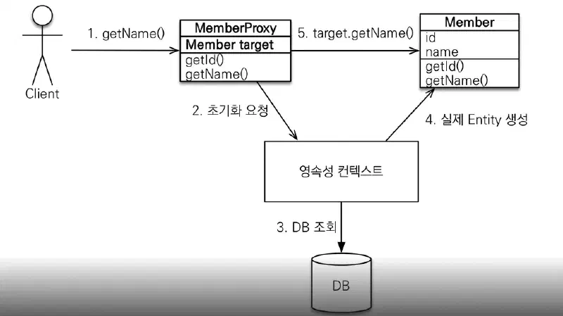 - 초기화할때, 실제 Entity로 바뀌지 않음 => 프록시를 통해 실제에 접근하는것