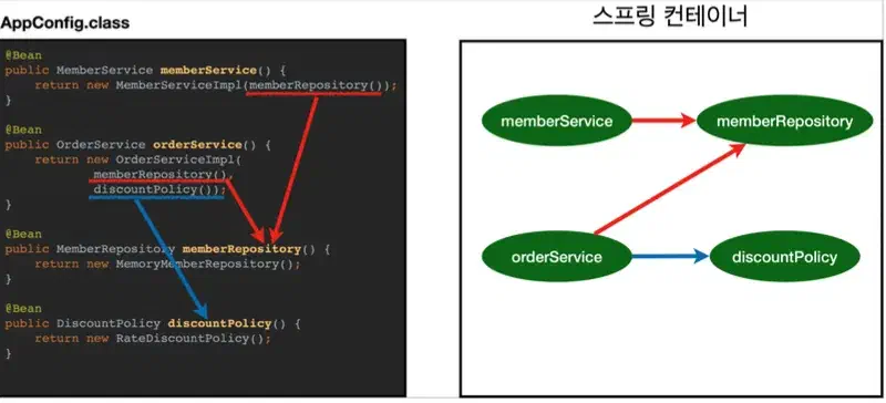 - 설정 정보를 참고해서 의존관계 주입