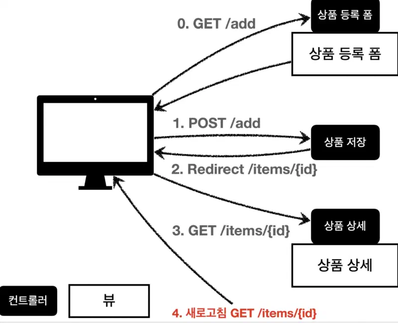 리다이렉트는 웹브라우저가 새로운 요청을 하는거임 상품을 저장하고, 리다이렉트를 하면, 새로고침할 때 redirect요청이 들어가기 때문에 문제 해결 가능