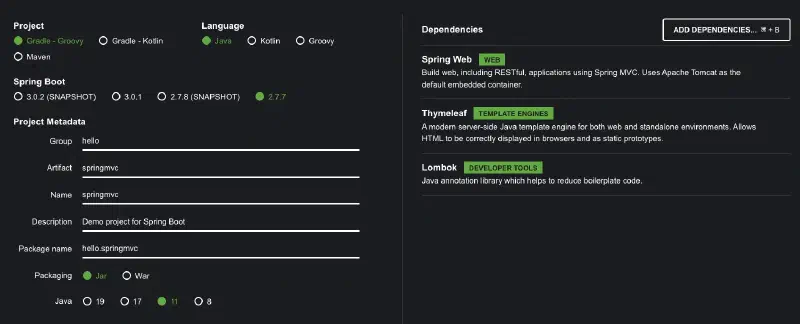 implementation 'org.springframework.boot:spring-boot-starter-thymeleaf'기본설정