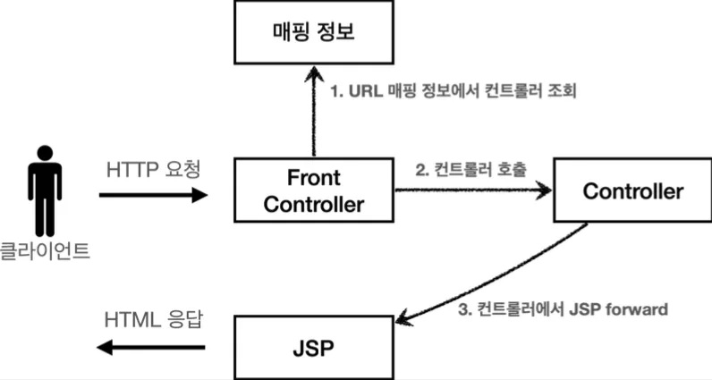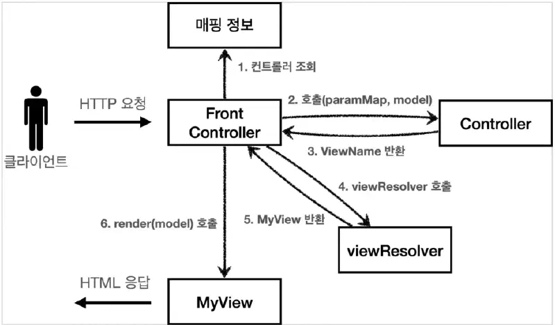 스프링 MVC는 이 과정과 거의 같은 구조를 가지고 있다