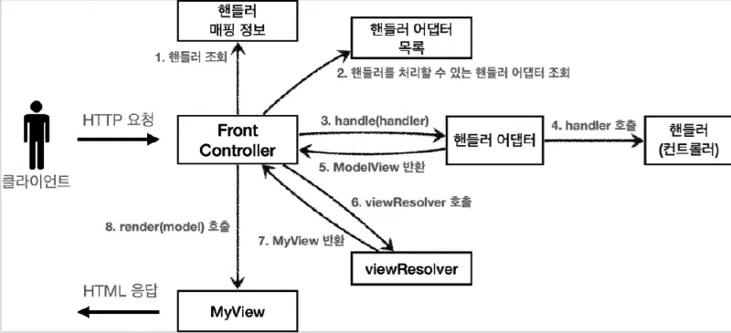 핸들러 : 해당하는 어댑터만 있으면 다 처리할 수 있기 때문에 컨트롤러의 이름을 더 넓은 핸들러로 변경